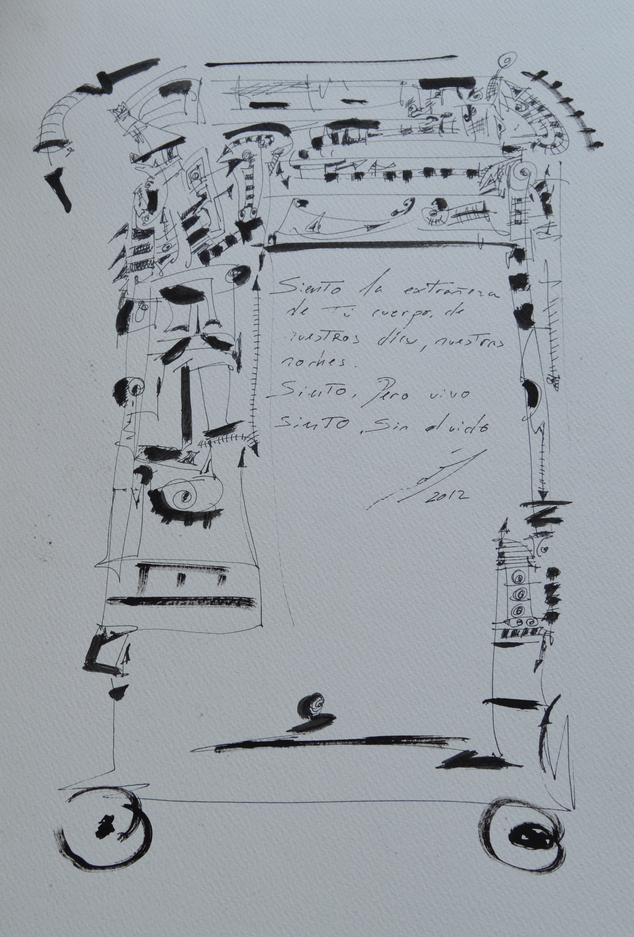 Poemas y palabras Palabras. 2013Acuarela sobre papel, 25×25. Dibujo con plumilla sobre papel. Poema. 2012Acuarela sobre papel, 23×31. Sombrero con pensamiento.Tinta sobre acuarela sobre papel, 23×31. Tinta y plumilla sobre papel con poema. 2012